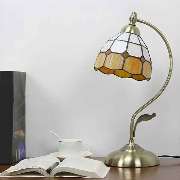 Vintage Tiffany-Style Desk Lamp with Stained Glass Shade & Swan Neck - 110V-120V Orange/Yellow