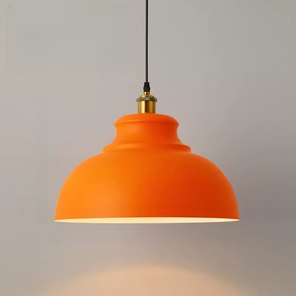 Orange Single Head Hanging Light Fixture Industrial Metallic Dome Shaped Drop Pendent for Dining Room
