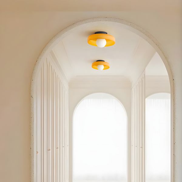 Mid-Century Modern Flush Mount Ceiling Light, Retro Glossy Steel & Opal Glass Fixture for Hallway - Orange 110V-120V 10"