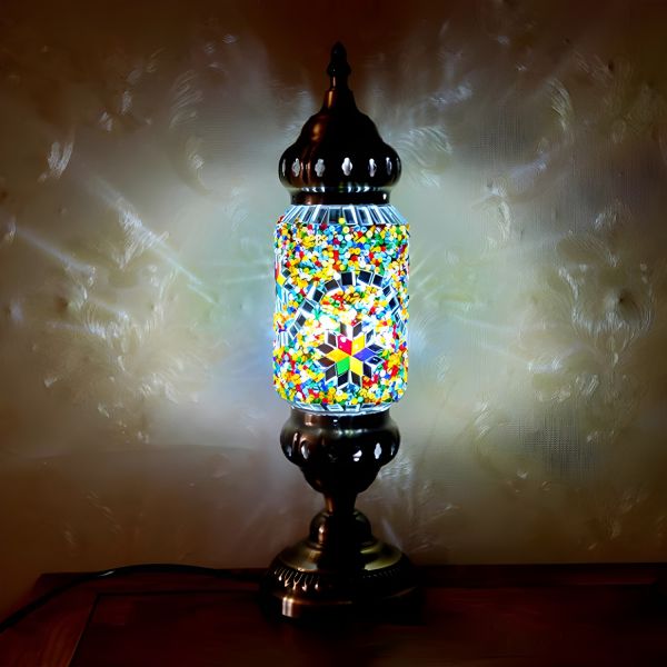 Bohemian Moroccan Mosaic Cylinder Table Lamp, Antique Bronze Finish - 110V-120V Orange