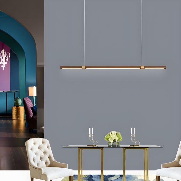Scandinavian Wood-Linear Pendant Light Faux-Wood LED Strip with Brass Accents for Dining Room & Kitchen - White Light 39.5" 110V-120V