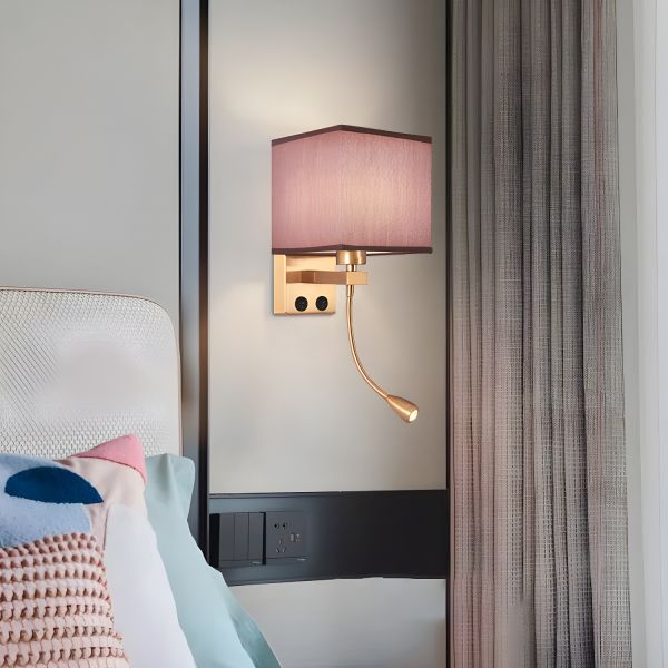 Transitional Fabric Shade Wall Sconce with Flexible LED Reading Light and USB Charging Port - 110V-120V Coffee 2