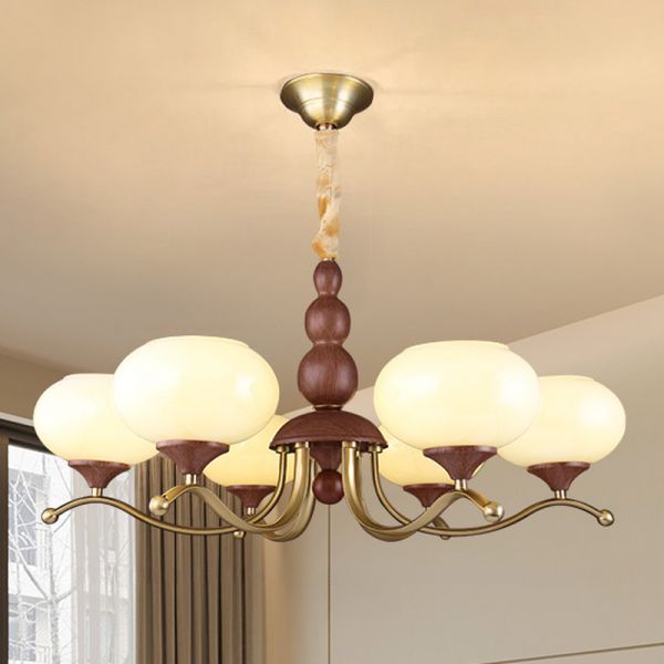 Chandelier with White Glass Shade, 6 Lights, Rectilinear Fixture, Contemporary Style, Drop Rod, Residential Use, and LED/Incandescent/Fluorescent Light, 110V-120V