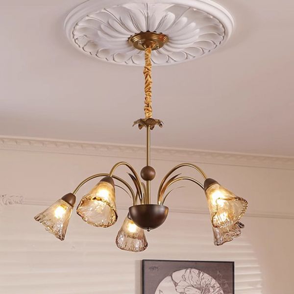Glass Candelabra with Adjustable Height Light Chandelier, 6, 110V-120V, Amber