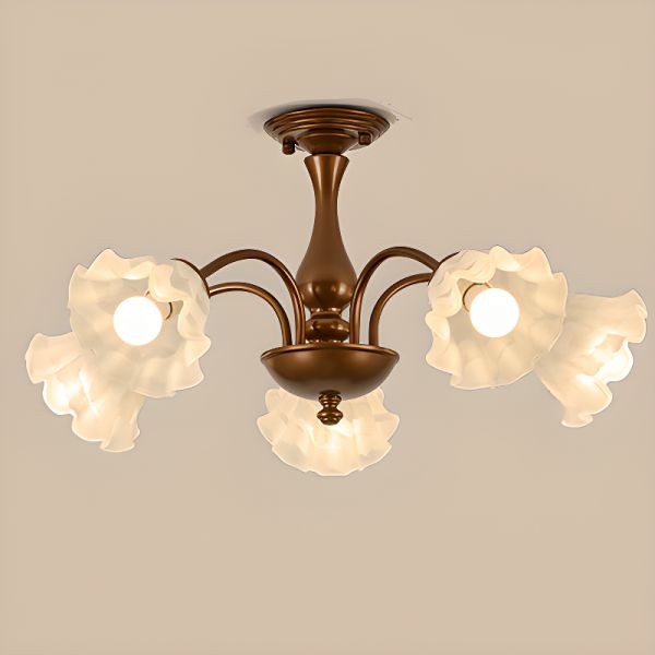 French Country Floral Semi Flush Mount Ceiling Light, Antique Bronze Finish with Scalloped Shades - 5 110V-120V