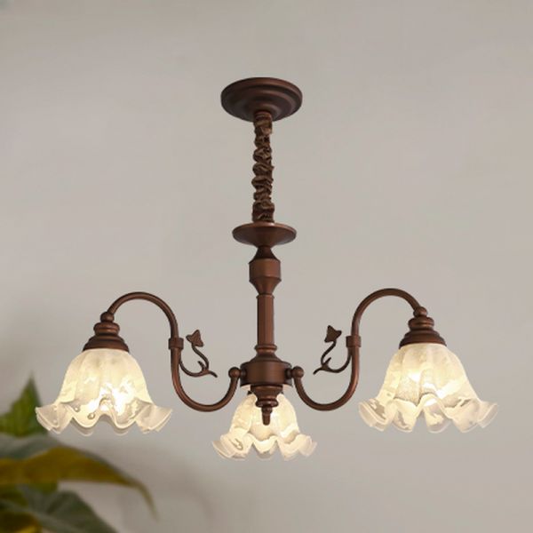 Rustic Bronze Chandelier, French Country Vintage Ceiling Light with Frosted Floral Glass Shades - 3 110V-120V