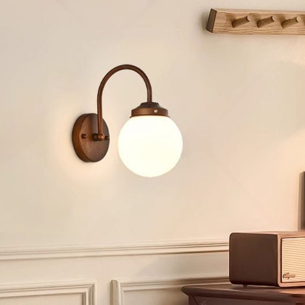 Industrial Vintage Wall Sconce, Brushed Bronze Gooseneck Light Fixture with 6-Inch White Opal Glass Globe for Bathroom Vanity, Hallway, or Bedroom - 110V-120V