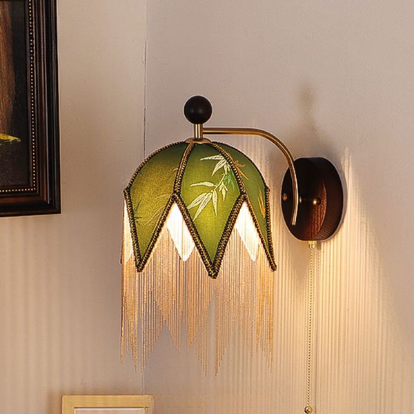 Light Green Sepia Wall Light with Textile Shade, 110V-120V