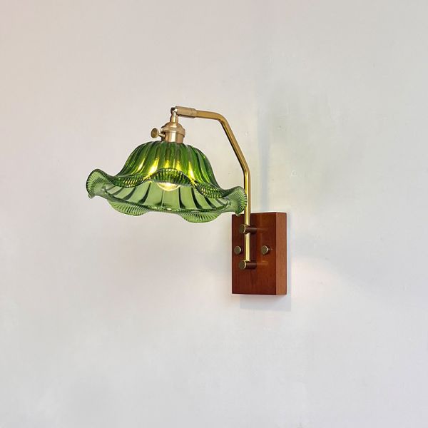 Light Green Brown Wall Sconce in Natural Wood with Down Glass Geometric Cover, 110V-120V, 9.5"