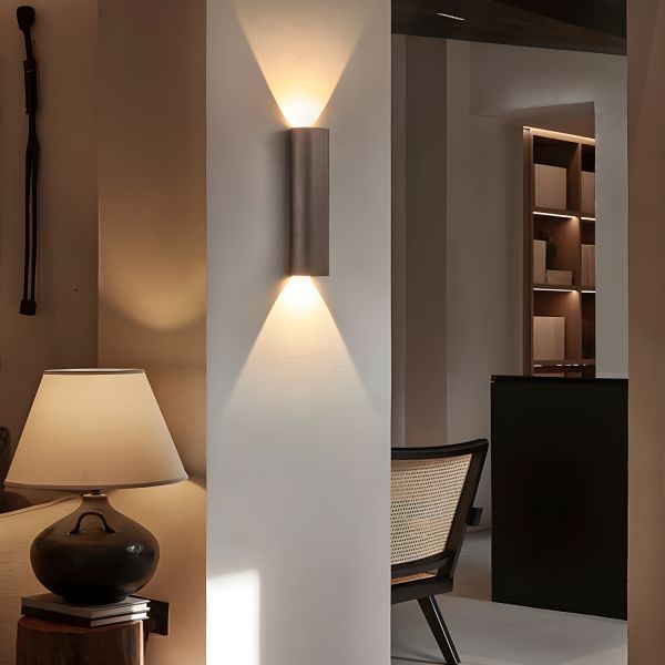 Minimalist Brushed Aluminum Wall Sconce, LED Up Down Lighting Fixture for Hallway or Bedroom - 110V-120V Brown Natural Light