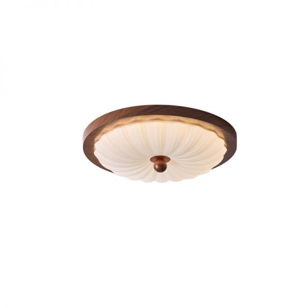Japandi Flush Mount Ceiling Light, Solid Walnut Wood Scalloped LED Fixture, High CRI Bedroom Lamp - 110V-120V Remote Control Stepless Dimming 16"