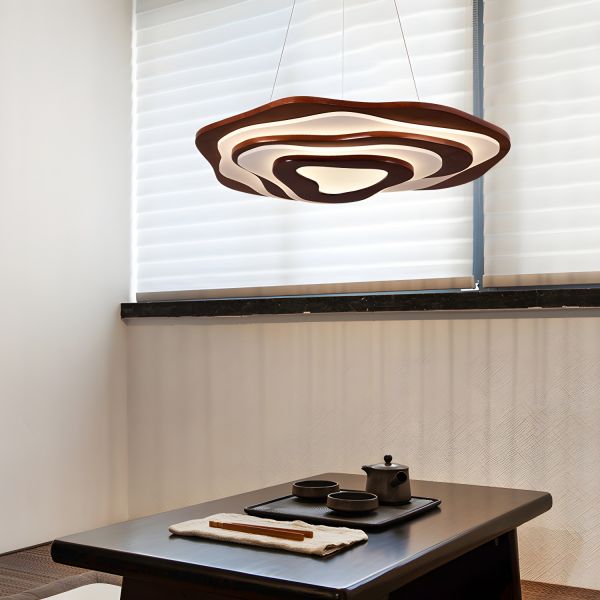 Scandinavian Wavy Solid Wood LED Pendant Light Organic Silhouette Linear Chandelier - Brown 110V-120V 16" Remote Control Stepless Dimming