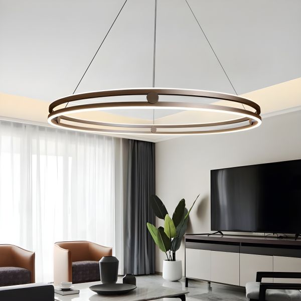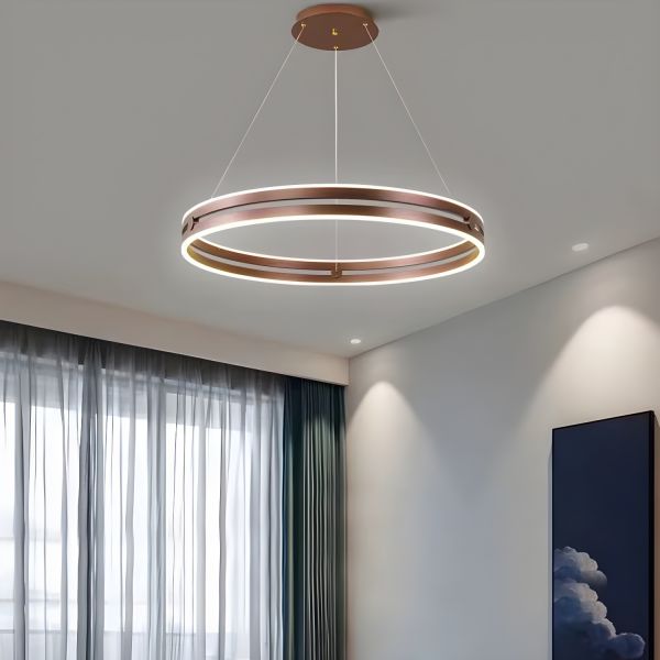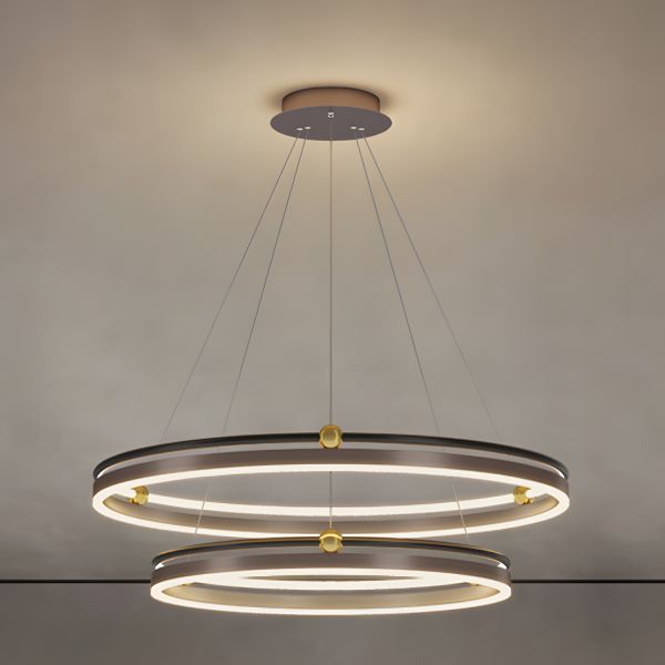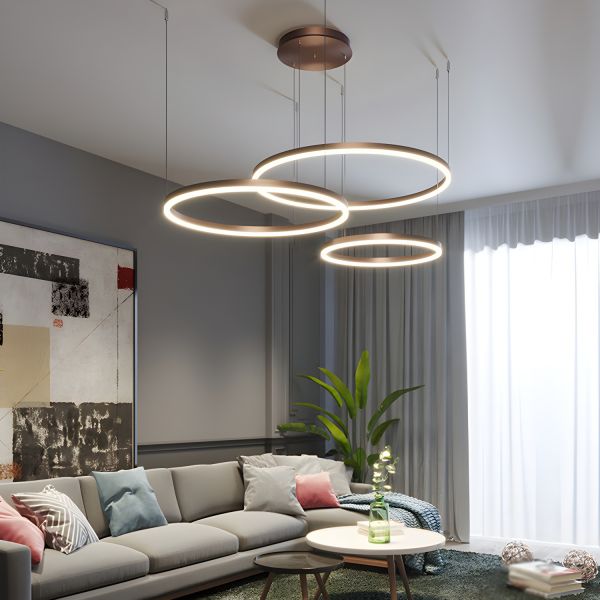 Minimalist Geometric LED Chandelier Adjustable 3-Ring Pendant Light - 110V-120V Coffee Remote Control Stepless Dimming 12"+16"+23.5"