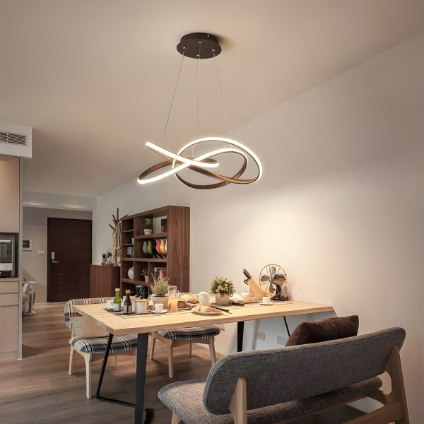Sculptural Infinity LED Chandelier Adjustable Geometric Pendant Light - 110V-120V Coffee Remote Control Stepless Dimming