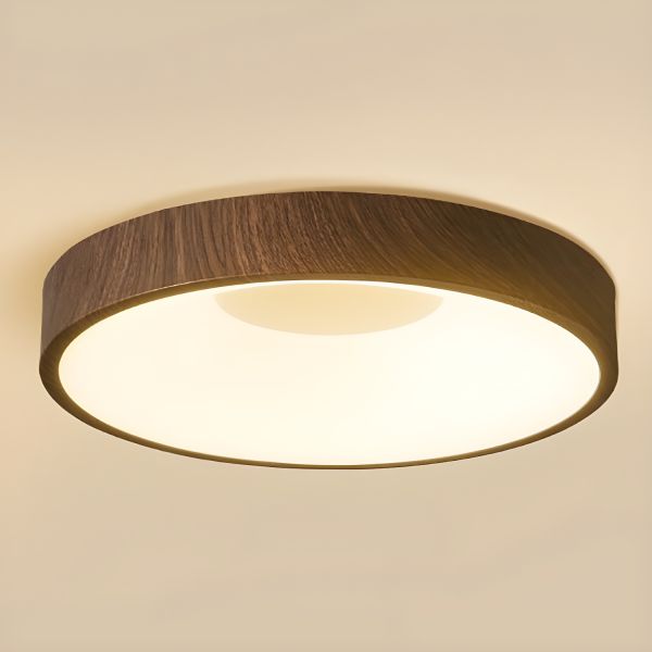 Scandinavian LED Flush Mount Ceiling Light, Slim Wood Grain Fixture for Low Ceilings - 110V-120V Round Small Remote Control Stepless Dimming
