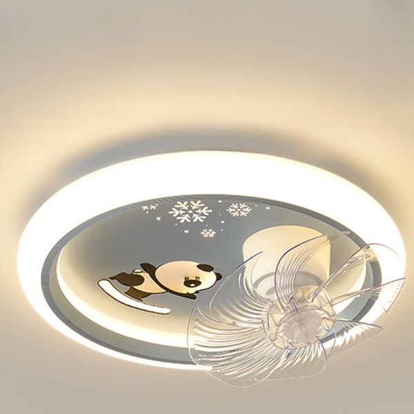 8 Blades Children's Flush Mounted Ceiling Fan with Light, Plastic, Smooth Dimming Control, Clear, Integrated LED, Flushmount, 110V-120V, Panda
