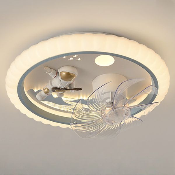 Kids Flushmount Smooth Dimming Control Flush Mounted Ceiling Fan with Light with Glassy ABS Plastic 8 Blades and Integrated LED, 110V-120V, Astronaut Hands Up