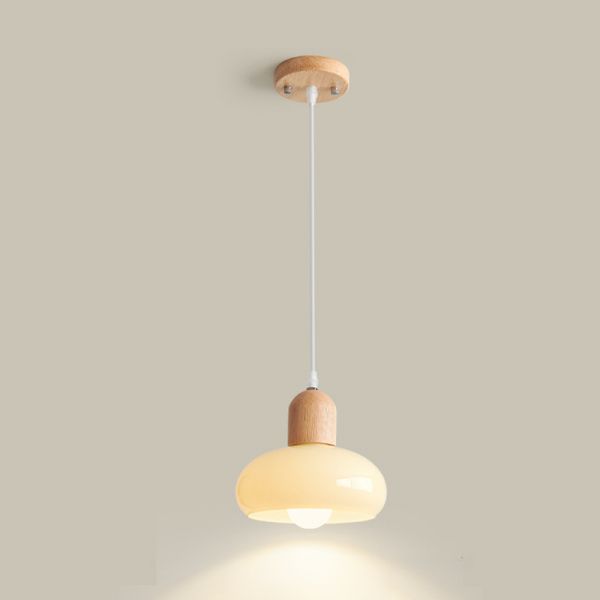 Ivory Regular Ceiling Light with Glass Shade and Lampshade String Mounting and Customizable Hanging Length, 110V-120V, Round Canopy