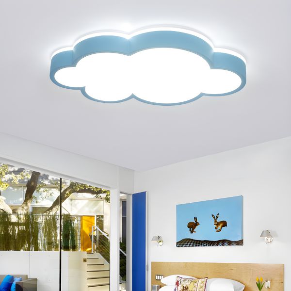 Whimsical Nordic Cloud Flush Mount Ceiling Light, Eye-Caring LED Fixture for Kids Bedroom and Nursery - 110V-120V Blue