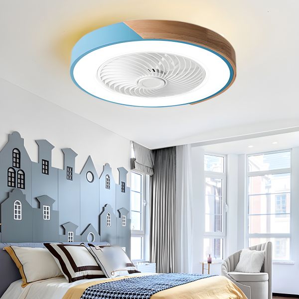 Scandinavian Enclosed Ceiling Fan with LED Light, Low Profile Bladeless Safety Design for Bedrooms - 110V-120V Blue Wind Deflector Not Included 22"