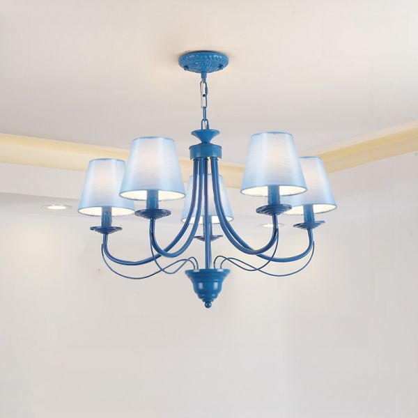 Rustic French Country Chandelier with Fabric Shades, Classic Metal Candle Pendant Light for Dining Room - 110V-120V Blue 5 With Shade
