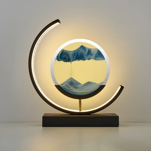 Contemporary LED Moving Sand Art Table Lamp with Dimmable Remote & 3D Kinetic Deep Sea Landscape - 110V-120V Blue Remote Control Stepless Dimming Black