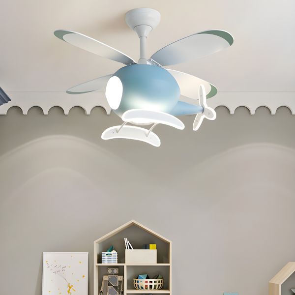 Whimsical Helicopter Ceiling Fan with Light, Dimmable LED & Remote for Kids Bedroom or Playroom - Blue 110V-120V Remote Control Stepless Dimming