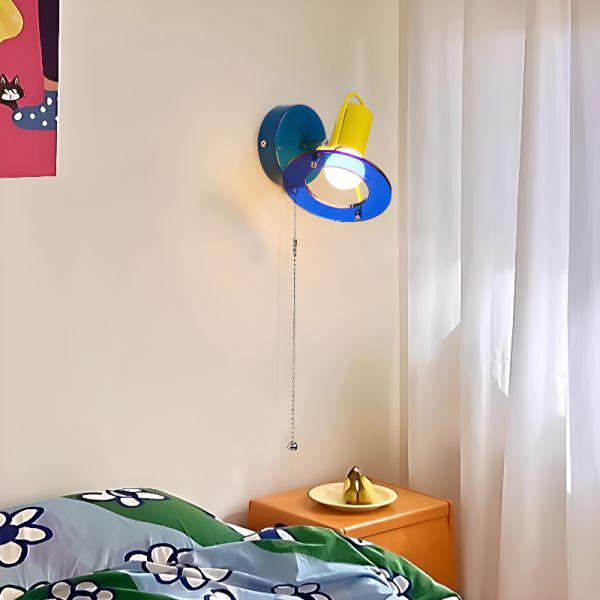 Postmodern Memphis Style Wall Sconce, Adjustable Colorful Art Lamp with Acrylic Halo Ring - 110V-120V Blue/Yellow No Switch