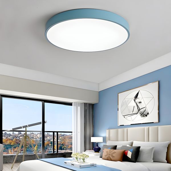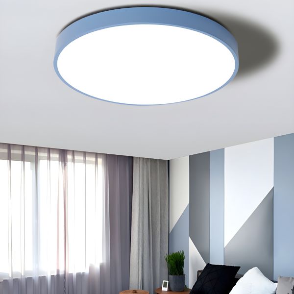 Scandinavian LED Flush Mount Ceiling Light, Low Profile Round Fixture for Low Ceilings - Blue 110V-120V 12" White Light