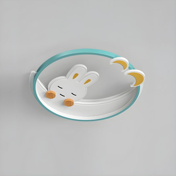 Whimsical LED Flush Mount Ceiling Light with Sleeping Rabbit Design for Nursery Bedroom - Blue 110V-120V 18" White Light