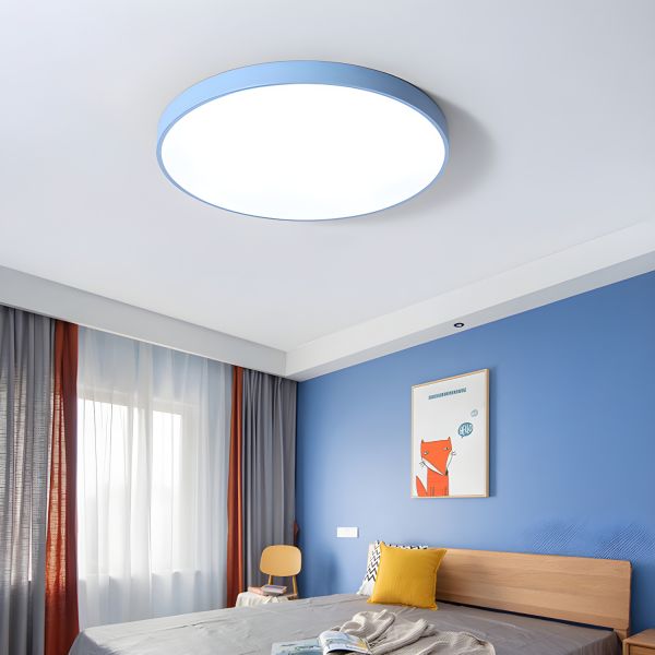 Scandinavian Ultra-Slim LED Flush Mount Ceiling Light, Round Low Profile Fixture - 110V-120V Blue 16" White Light