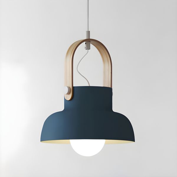 Scandinavian Dome Pendant Light with Wood Accent, Metal Hanging Lamp for Kitchen Island - 110V-120V Blue