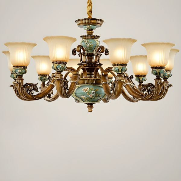 French Country Floral Chandelier Hand-Painted Relief & Glass Shades - 110V-120V 10
