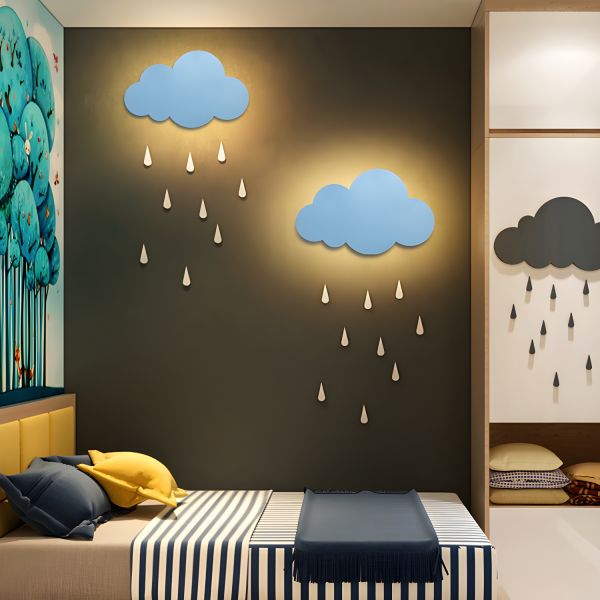 Scandinavian Cloud Wall Sconce LED Nursery Night Light with Soft Acrylic Diffuser - 110V-120V Blue 8.5" Remote Control Stepless Dimming