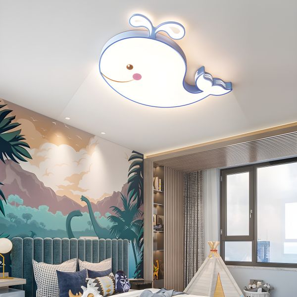 Playful Nautical Whale Ceiling Light, LED Flush Mount Fixture for Nursery & Bedroom - Blue 110V-120V Small Remote Control Stepless Dimming