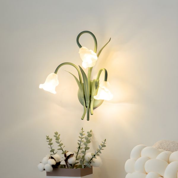 French Country Botanical Wall Sconce, Frosted Glass Lily Shade Vanity Light - 110V-120V 3