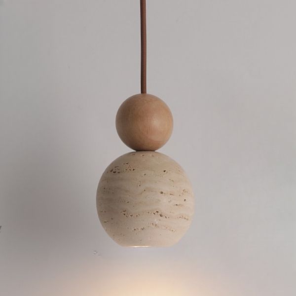 Cream Ceiling Light with Stone Shade for Indoor Use, Symmetrical Fixture, Direct Wired Electric with Cord for Residential Use, 1, 110V-120V, Wood Color, Round