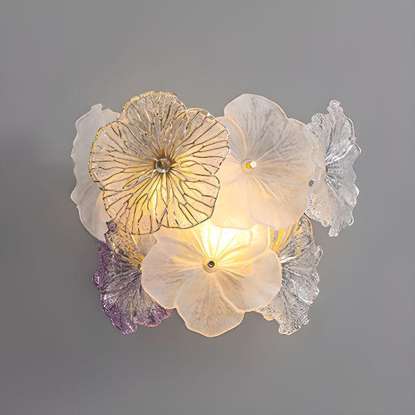 Romantic Floral Wall Sconce Lighting, Handmade Textured Glass Vanity Lamp with Gold Accents - 110V-120V