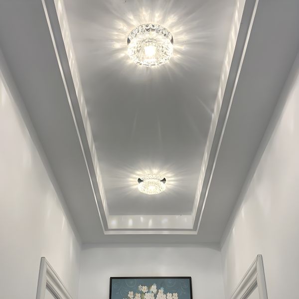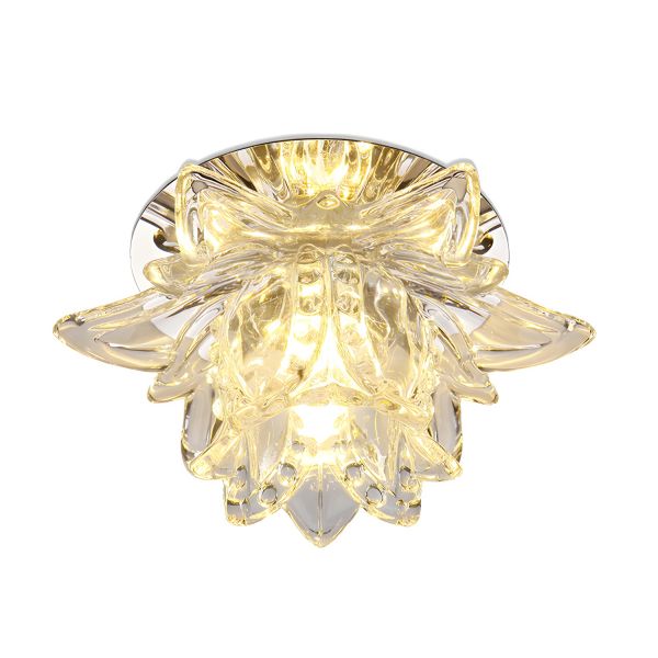 Glam Crystal Flush Mount Light, Mini LED Lotus Fixture for Hallway Entryway, Faceted Glass Design - Clear 110V-120V White Light