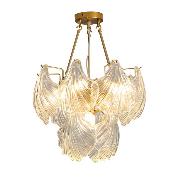 Art Deco Glam Flush Mount Ceiling Light, Gold Finish with Textured Glass Ginkko Leaves for Living Room or Bedroom - 110V-120V 20"