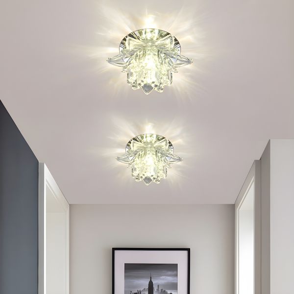 Elegant Crystal Lotus Flush Mount Ceiling Light, Compact LED Flower Fixture for Hallway Entryway - Clear 110V-120V White Light