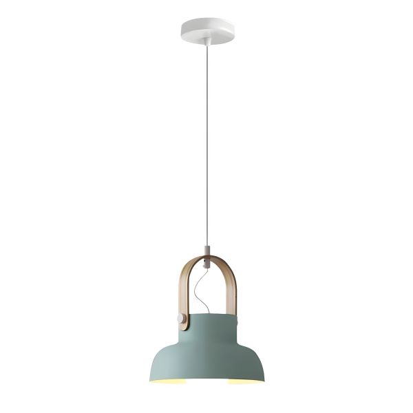 Scandinavian Dome Pendant Light with Wood Accent, Metal Hanging Lamp for Kitchen Island - 110V-120V Green