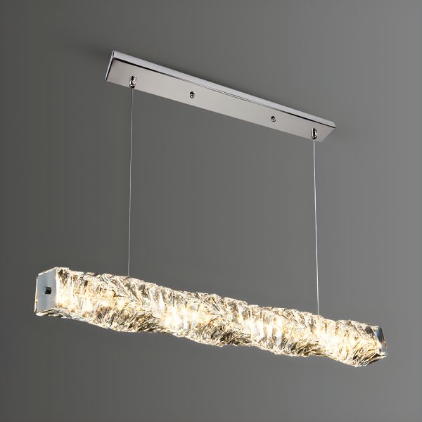 Contemporary Linear Crystal Chandelier, Chrome Island Pendant Light with Faceted K9 Details - 110V-120V 39.5" Warm Light