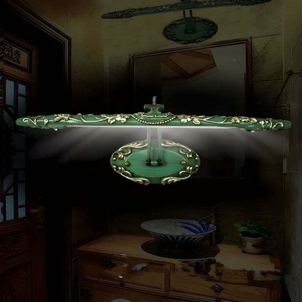 Baroque Floral Carved Vanity Mirror Light with Adjustable Swing Arm Art Gallery Picture Lamp - Green 110V-120V White Light 19.5"