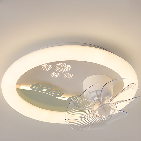 8 Blades Children's Flush Mounted Ceiling Fan with Light, Plastic, Smooth Dimming Control, Clear Blades, Integrated LED, Flushmount, Green, 110V-120V