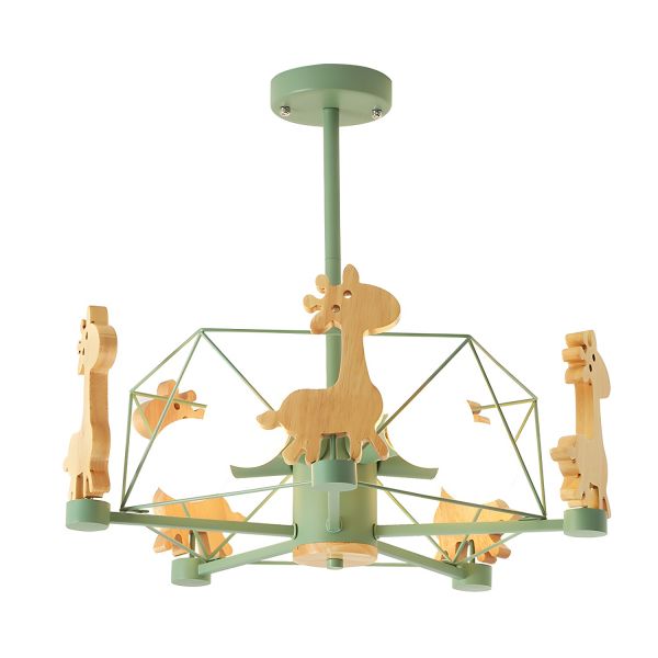 Whimsical Nordic 5-Light Semi-Flush Fixture with Wooden Giraffe Accents - 110V-120V Green