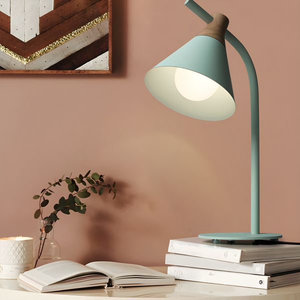 Scandinavian Minimalist Metal Desk Lamp with Natural Wood Accent - 110V-120V Green