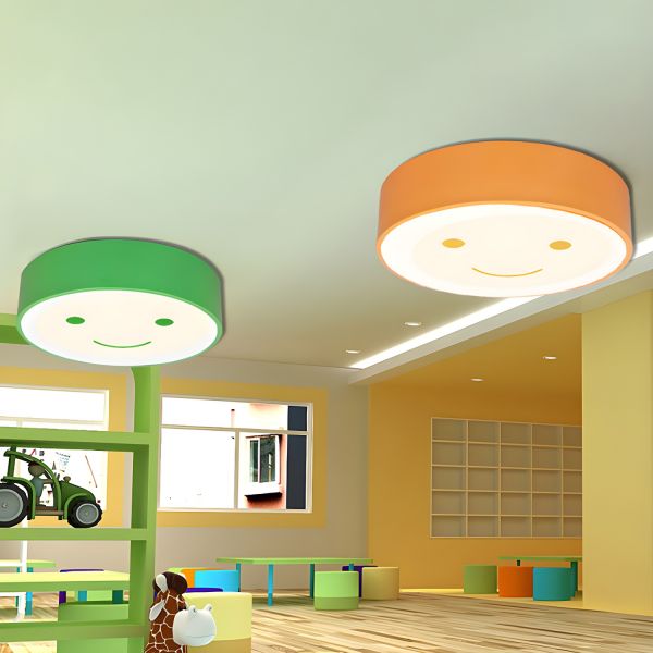 Whimsical Round LED Flush Mount Light, Smiley Face Ceiling Fixture for Kids Bedroom - Green 110V-120V White Light