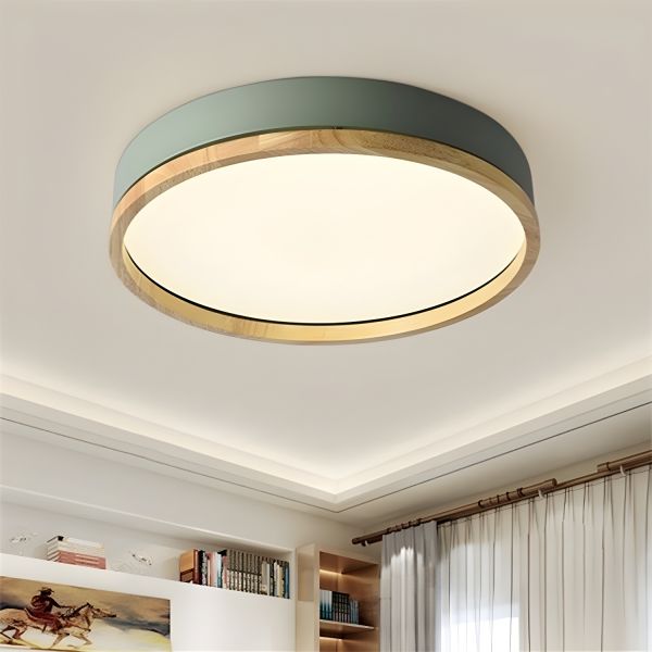 Scandinavian LED Flush Mount Ceiling Light with Natural Wood Accent, Round Metal Fixture for Bedroom - 110V-120V Green 30 cm Warm Light