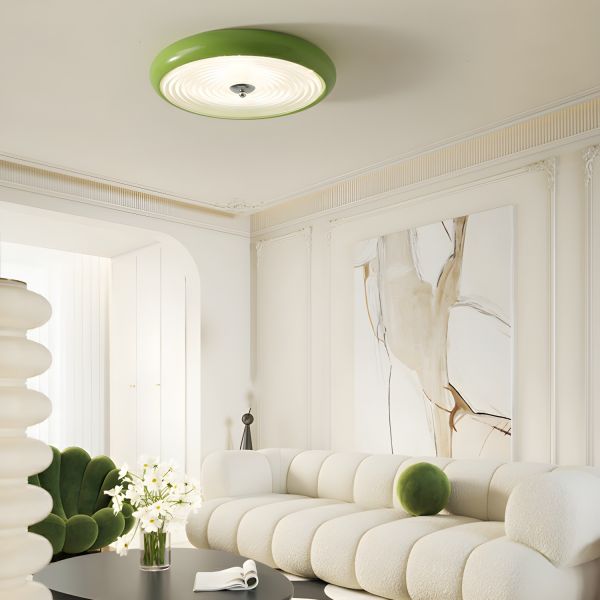 Modern Minimalist Flush Mount Ceiling Light, Colorful Iron & Acrylic LED Lamp for Hallways & Bedrooms - Green 110V-120V 14" White Light